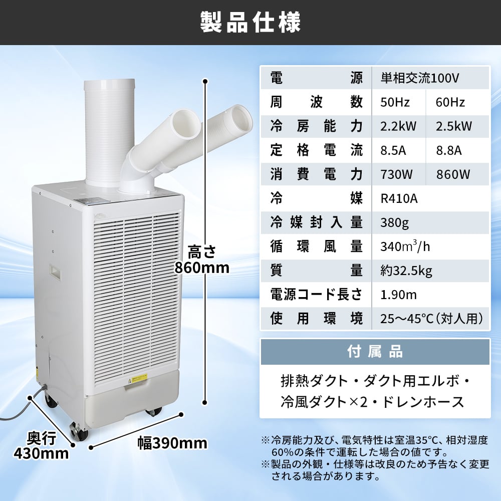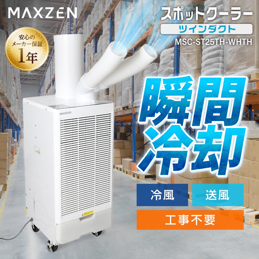 MAXZEN スポットエアコン 業務用 ツインダクト 除湿機 衣類乾燥除湿機 工事不要 置き型 移動式 冷風 送風 ポータブルエアコン ホワイト MAXZEN MSC-ST25TH-WHTH