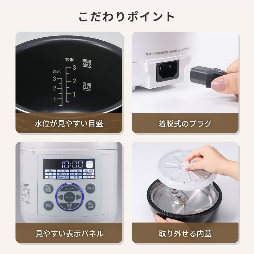 「MAXZEN 電気圧力鍋 調理容量1.3L 炊飯器3合 マクスゼン レシピブック付き MEPC-TX301-WH」(ジャー/炊飯器)