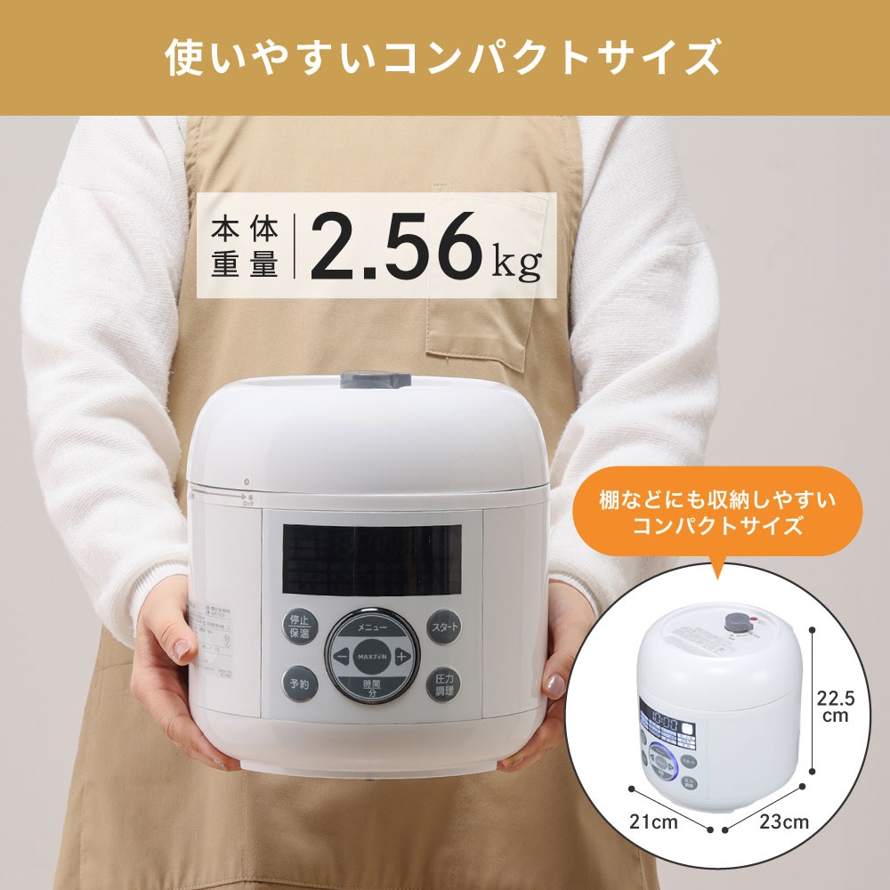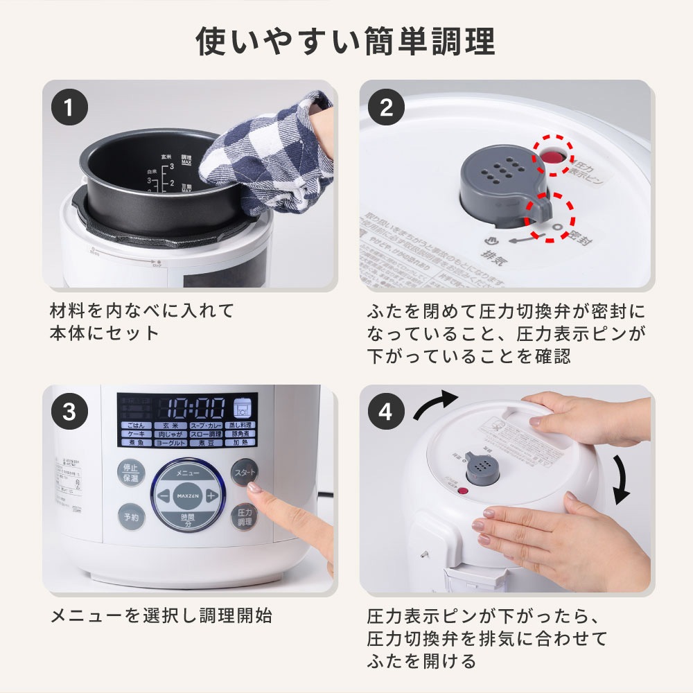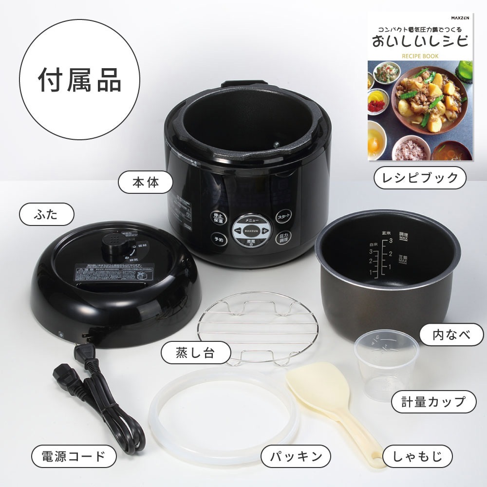 MAXZEN 電気圧力鍋 調理容量1.3L 炊飯器3合 マクスゼン レシピブック付き MEPC-TX301-WH