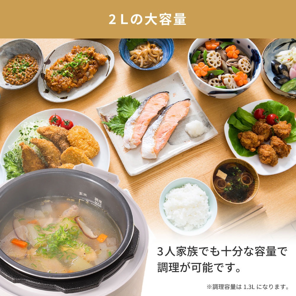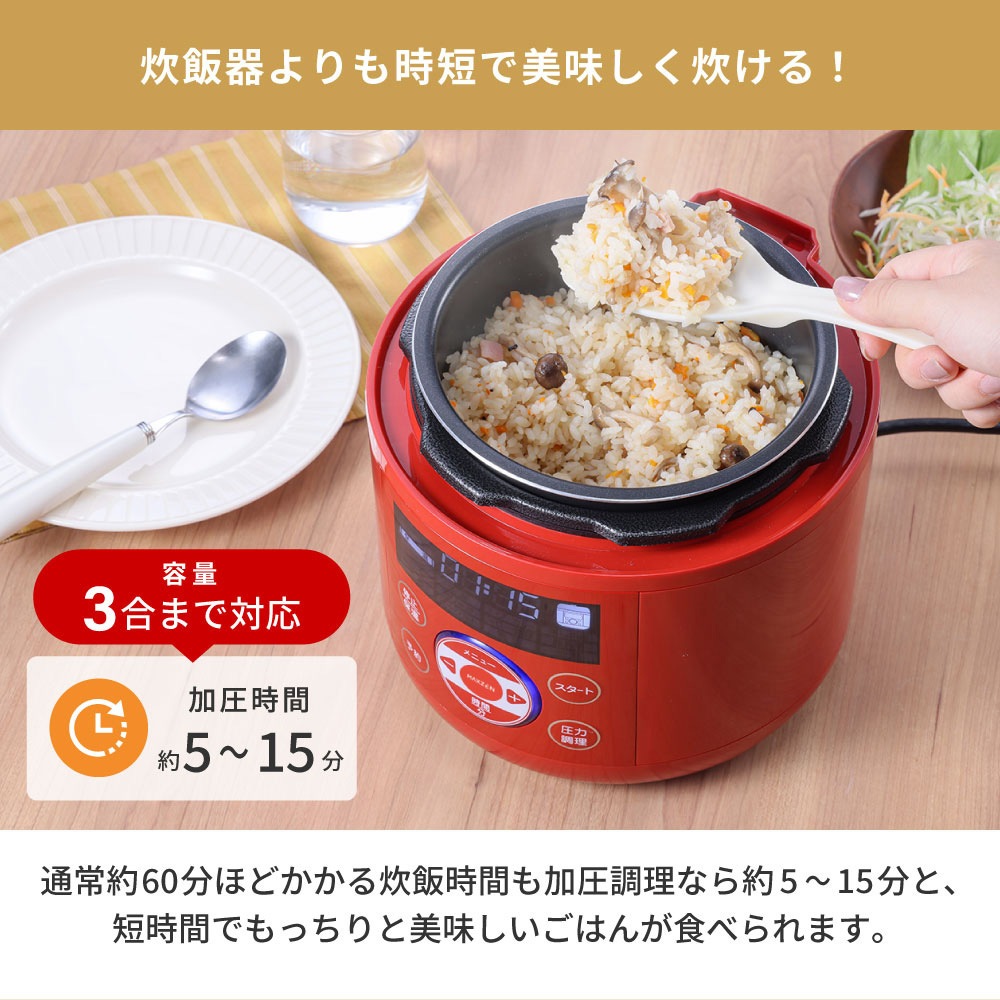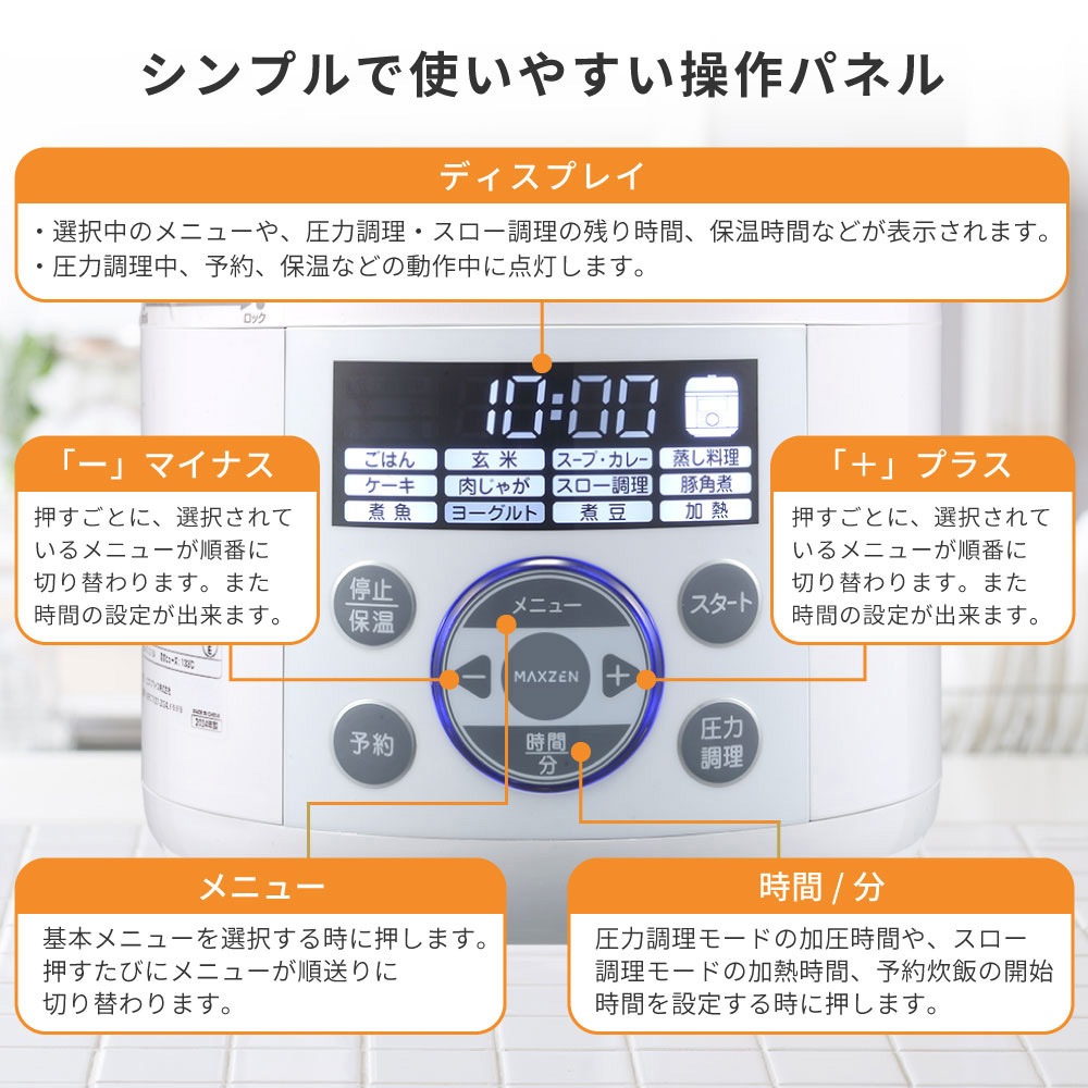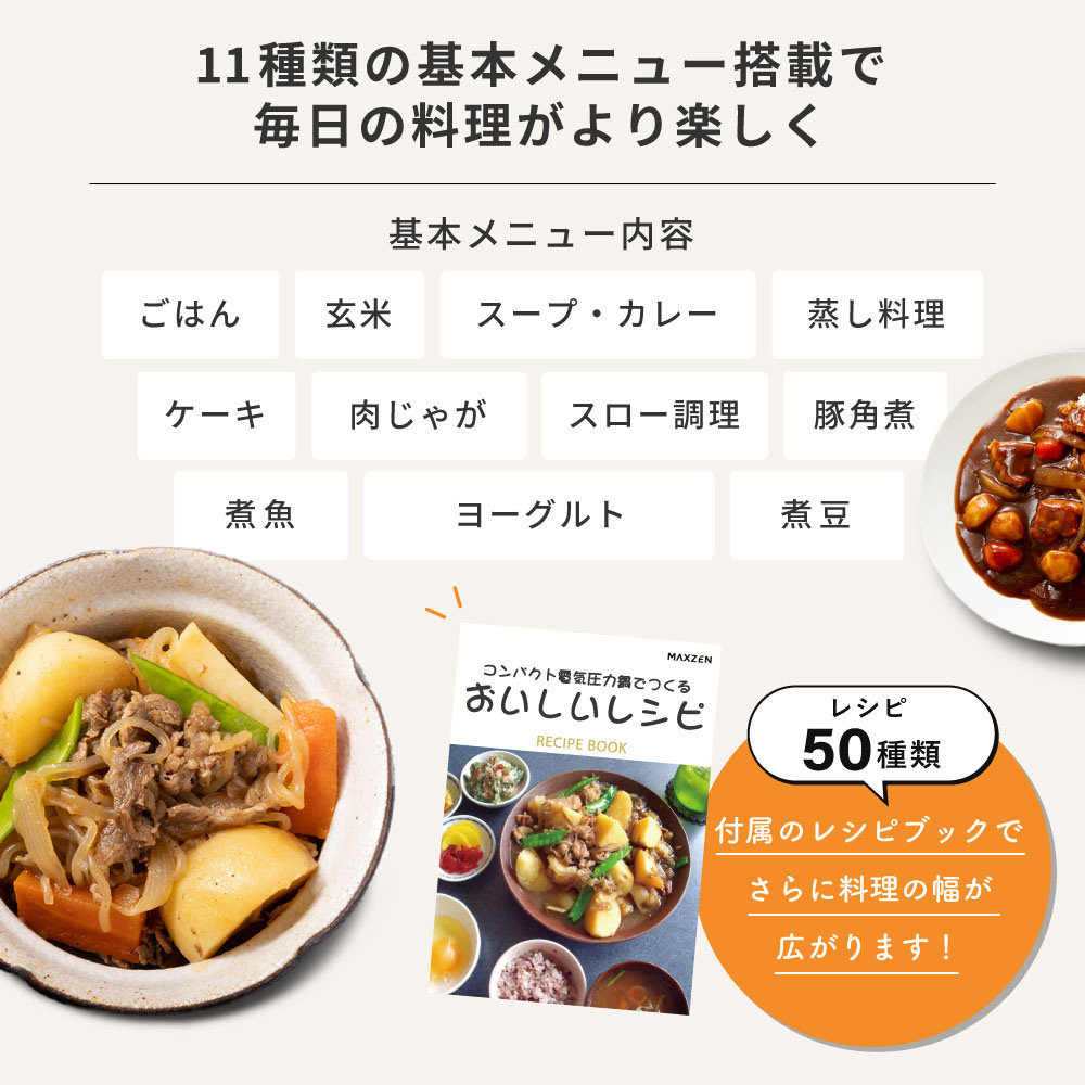 MAXZEN 電気圧力鍋 調理容量1.3L 炊飯器3合 マクスゼン レシピブック付き MEPC-TX301-WH