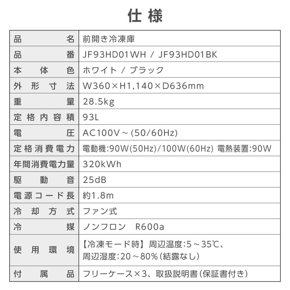 MAXZEN 冷凍庫 家庭用 小型 93L 右開き JF93HD01BK
