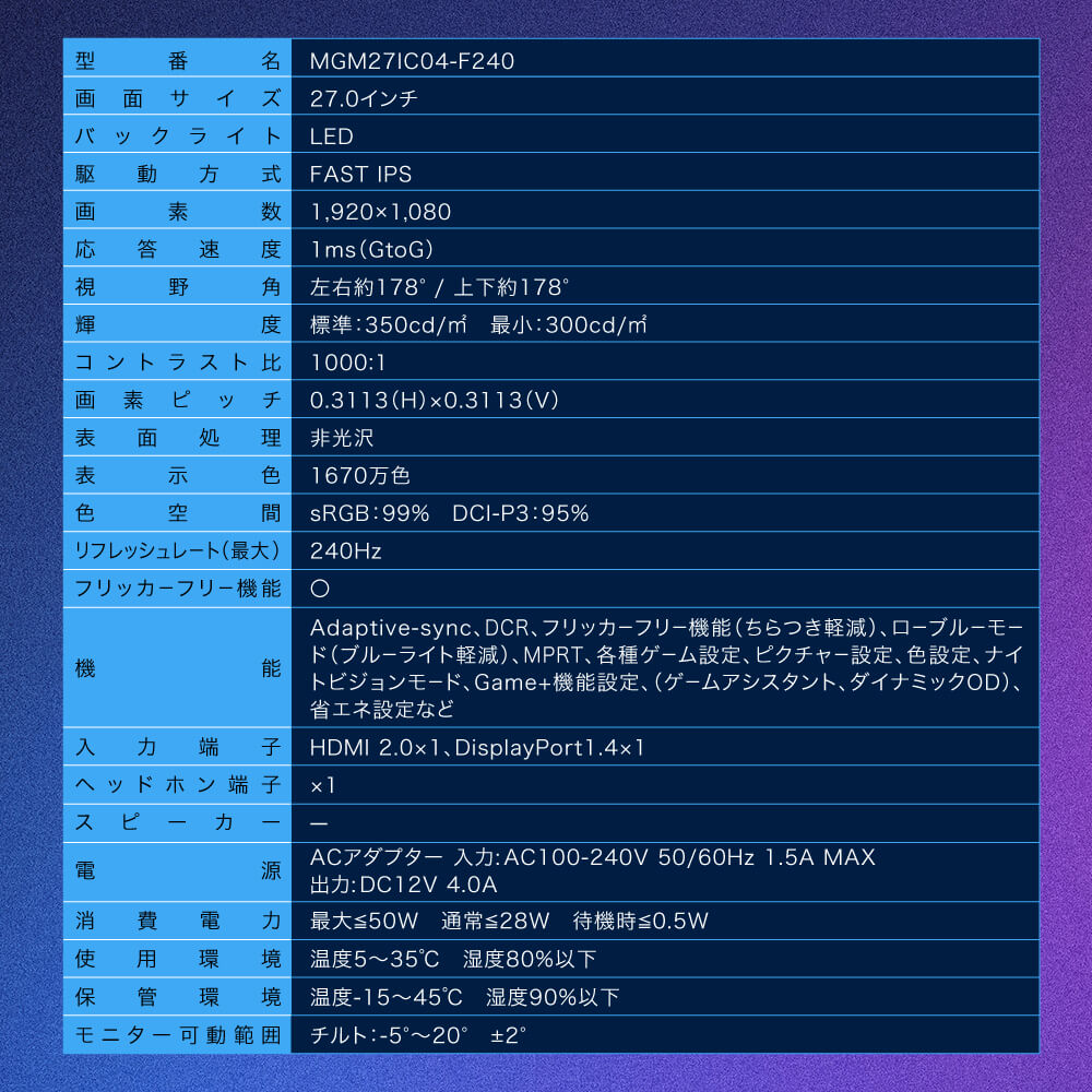「MAXZEN 液晶モニター 27インチ ゲーミングモニター MGM27IC04-F240」(液晶ディスプレイ)
