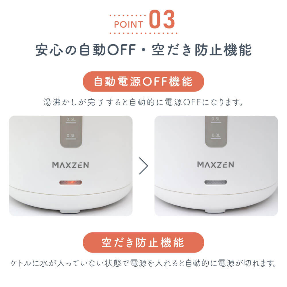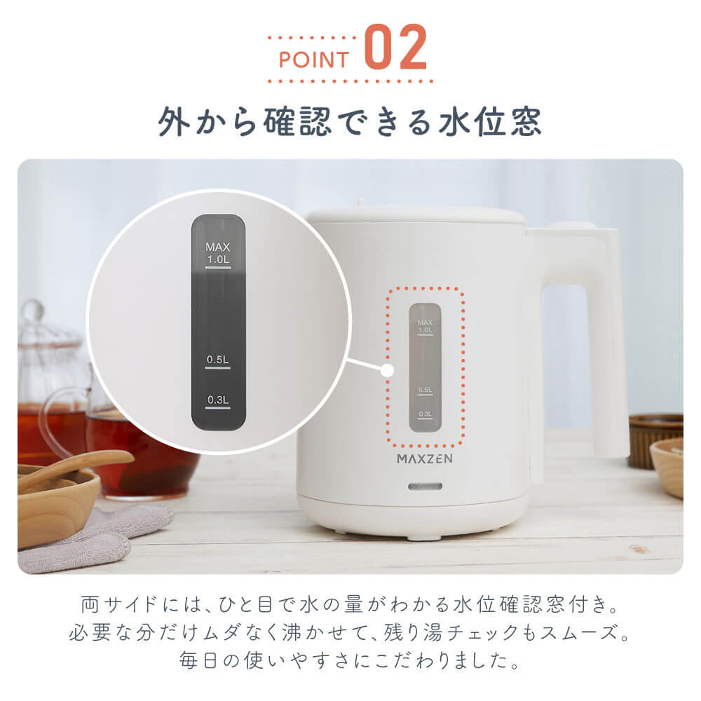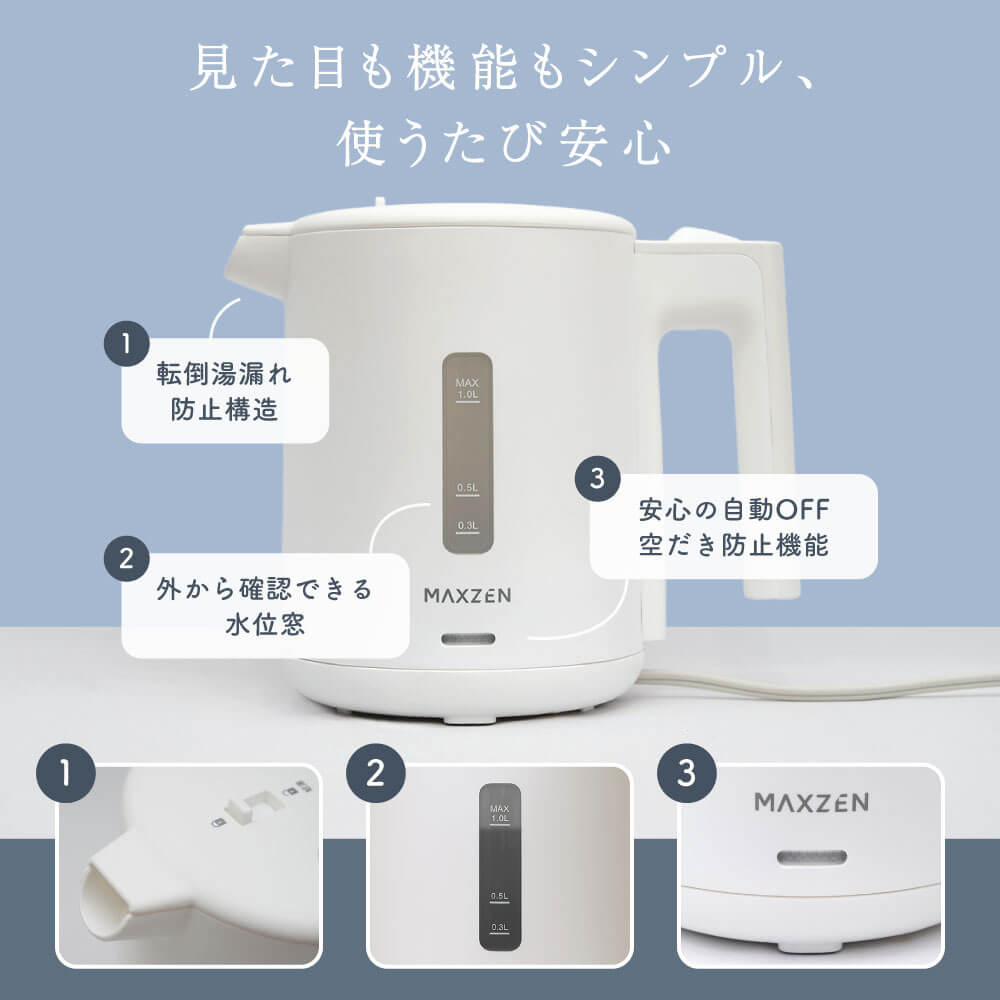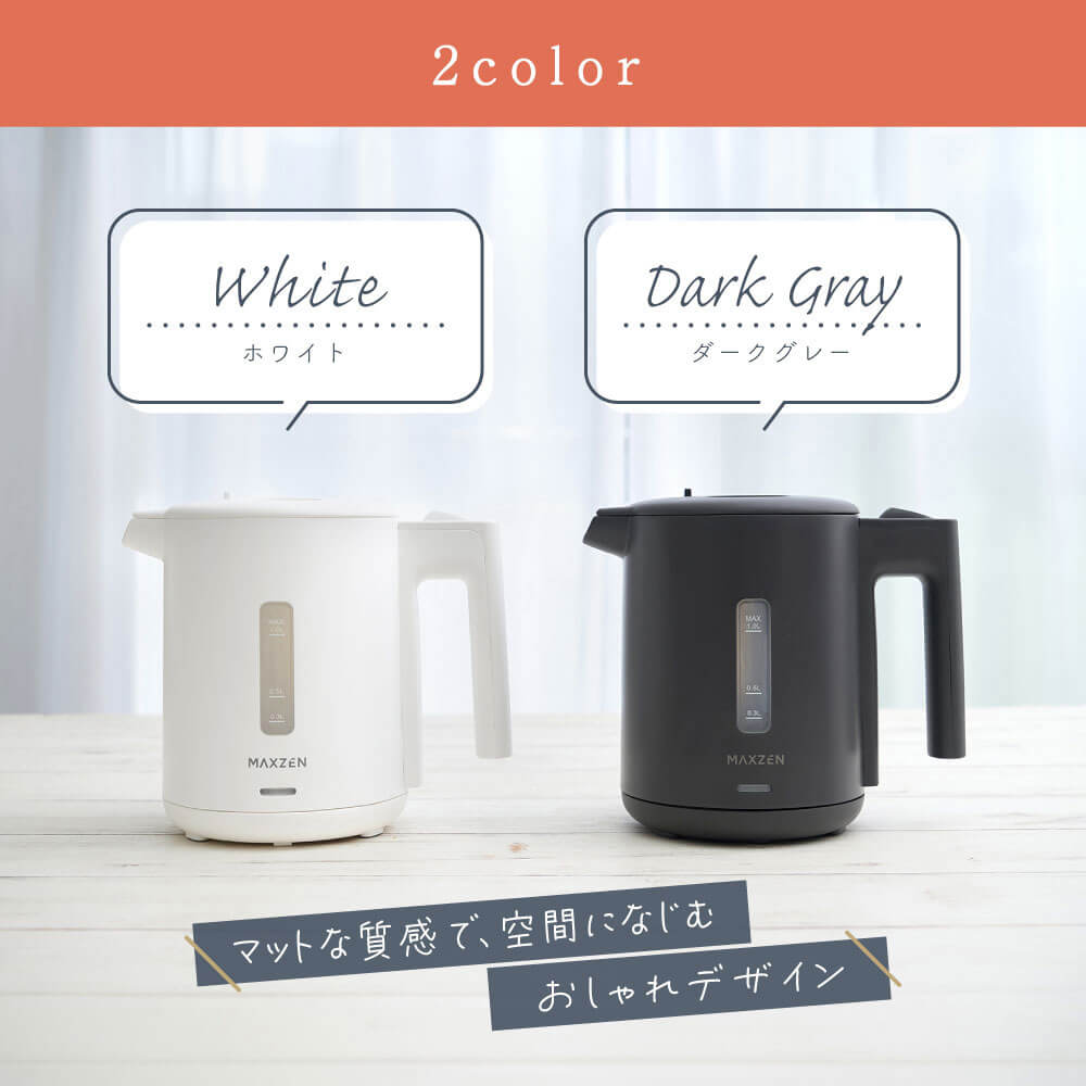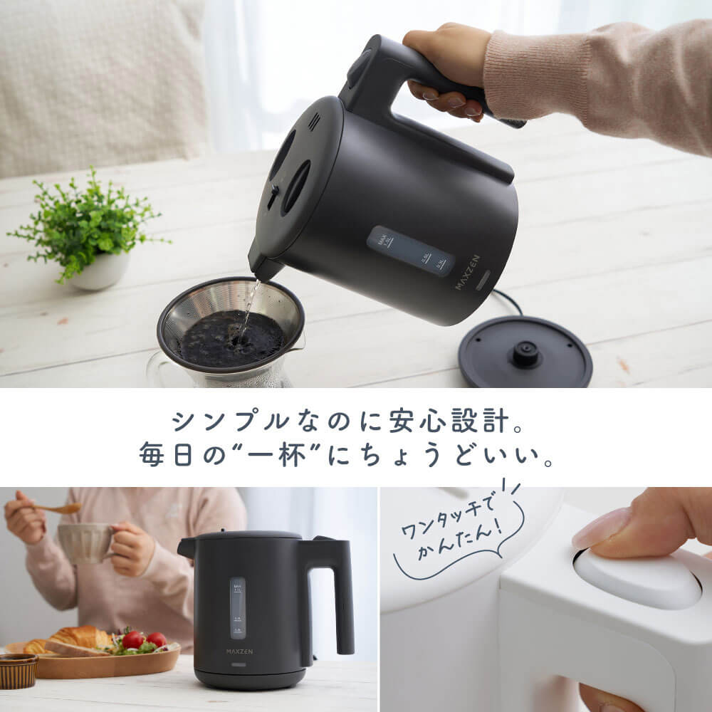 MAXZEN 1.0L ワンタッチ式 電気ケトル MKT10SR01-DGY