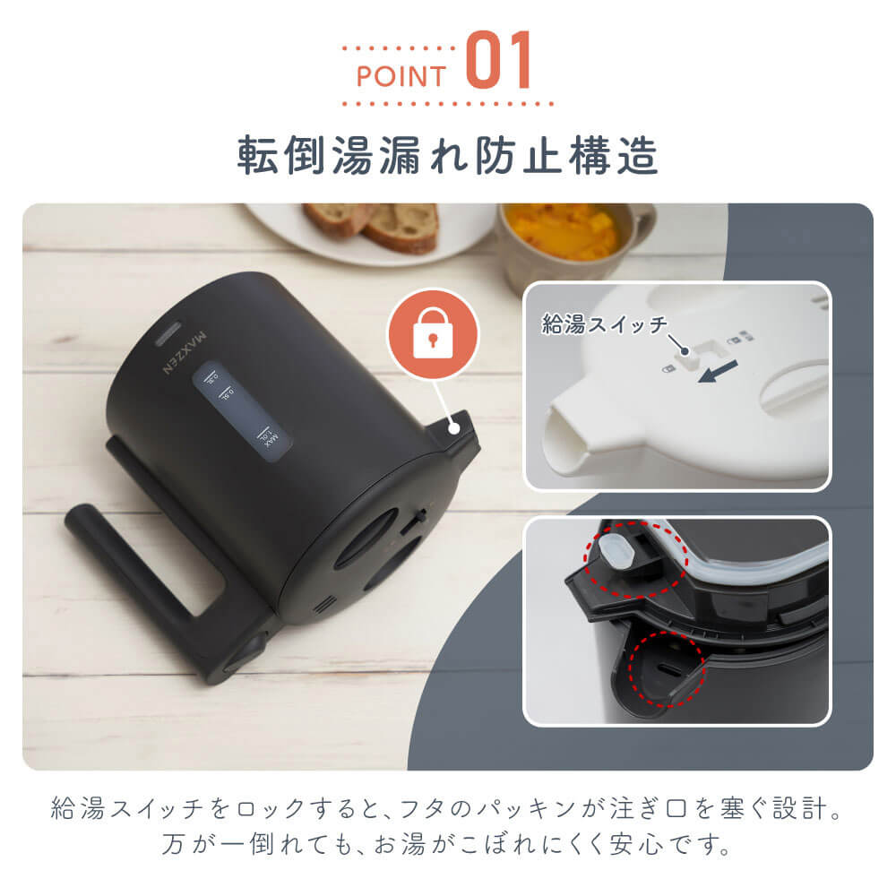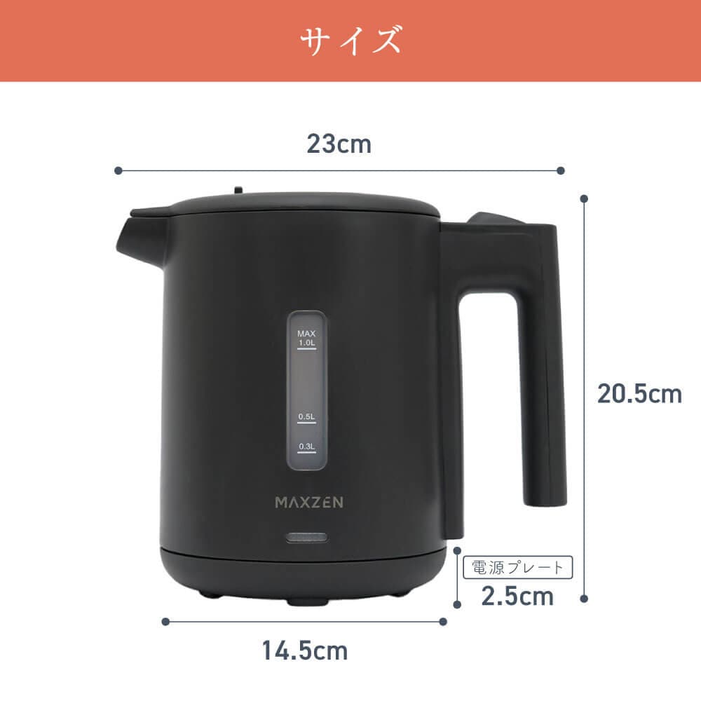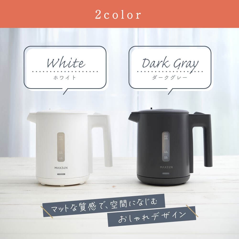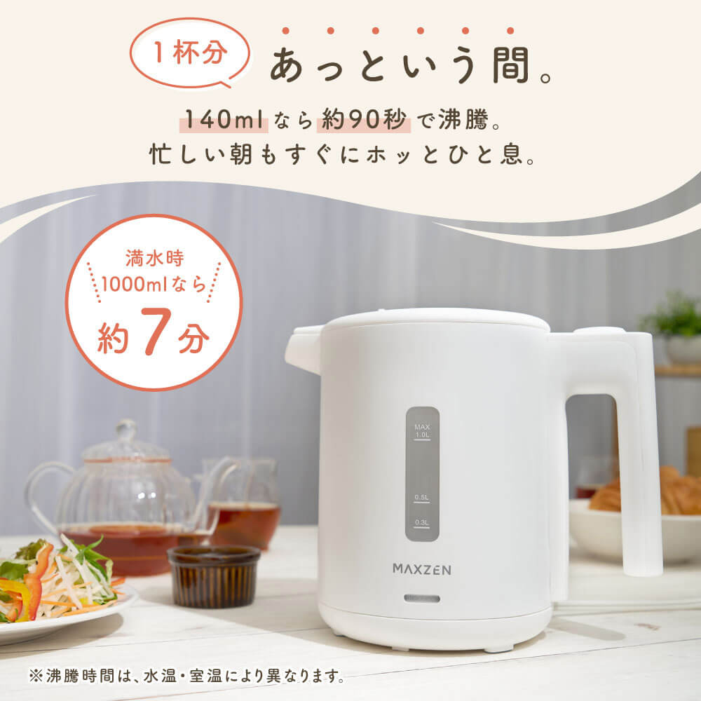 MAXZEN 1.0L ワンタッチ式 電気ケトル MKT10SR01-WH