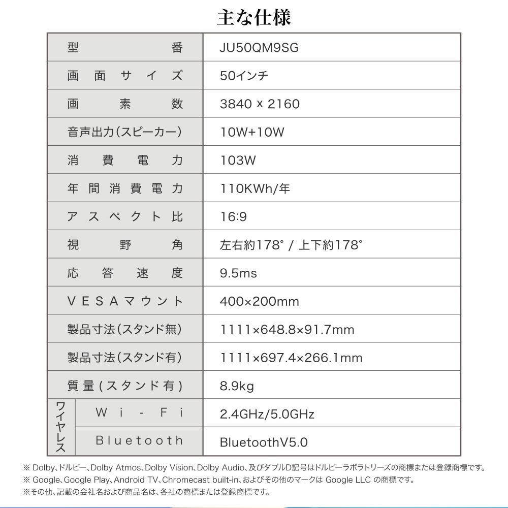 MAXZEN テレビ 50インチ 動画配信サービスも地上波も見たいものすべてを楽しむスマートテレビ JU50QM9SG