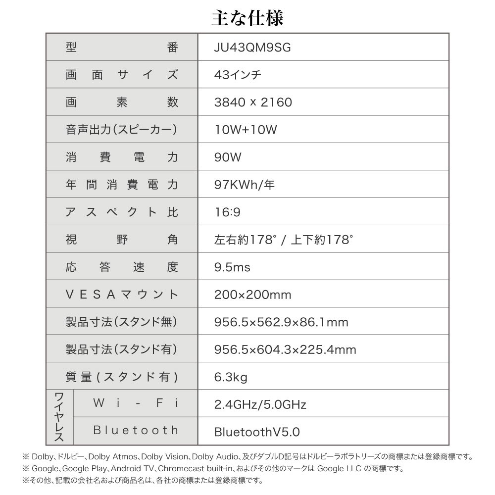 MAXZEN テレビ 43インチ 動画配信サービスも地上波も見たいものすべてを楽しむスマートテレビ JU43QM9SG