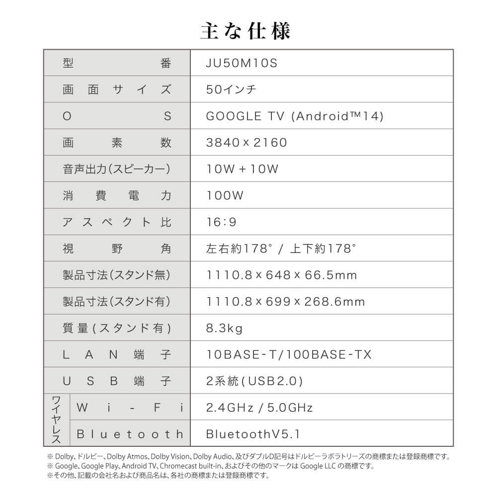 MAXZEN テレビ 50インチ 動画配信サービスの視聴に特化した「チューナーレス」スマートテレビ JU50M10S