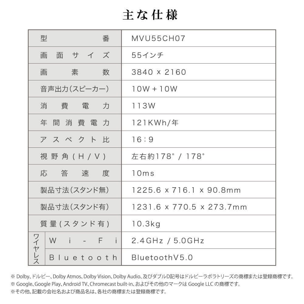 MAXZEN テレビ 55インチ GoogleTV・Wチューナー搭載 スマートテレビ MVU55CH07