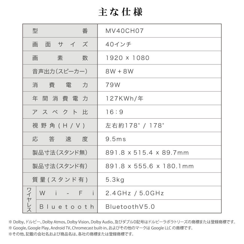 MAXZEN テレビ 44インチ GoogleTV・Wチューナー搭載 スマートテレビ MV40CH07