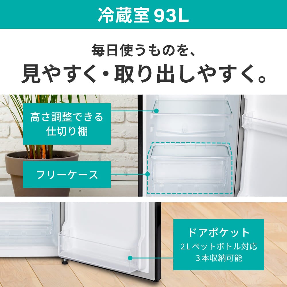 MAXZEN 2ドア冷凍冷蔵庫 スリム 130L 大容量・静音・省エネ MR130ML01BK